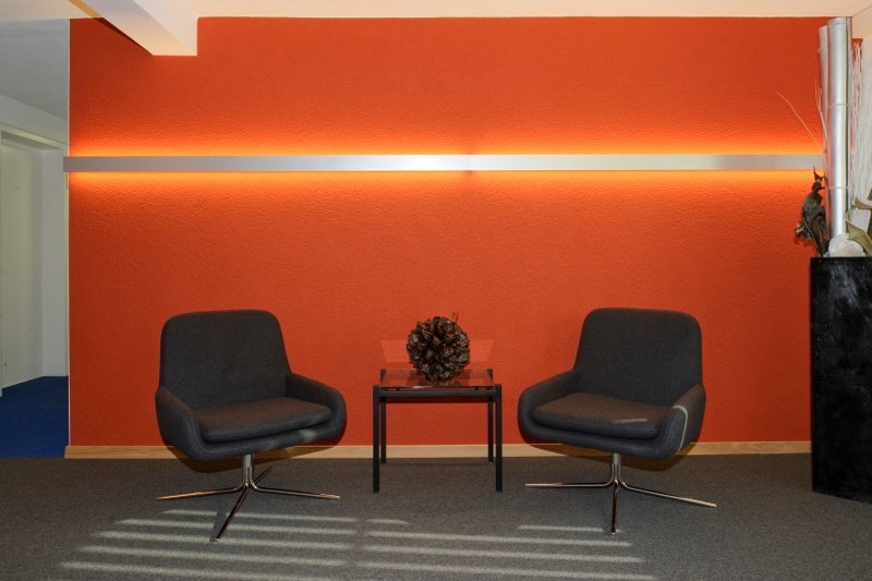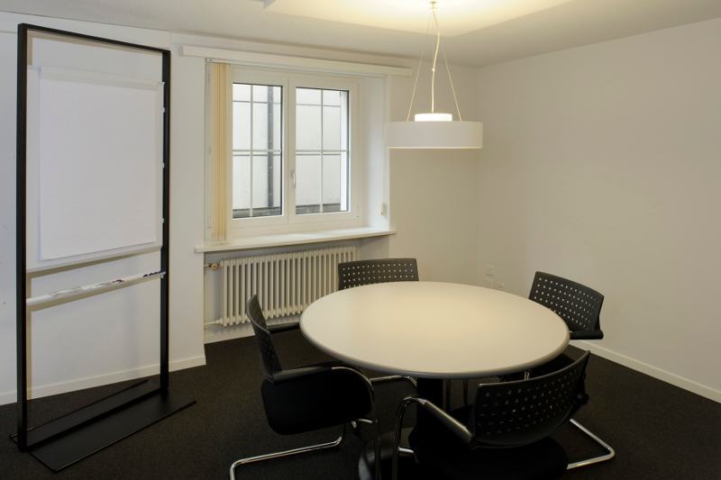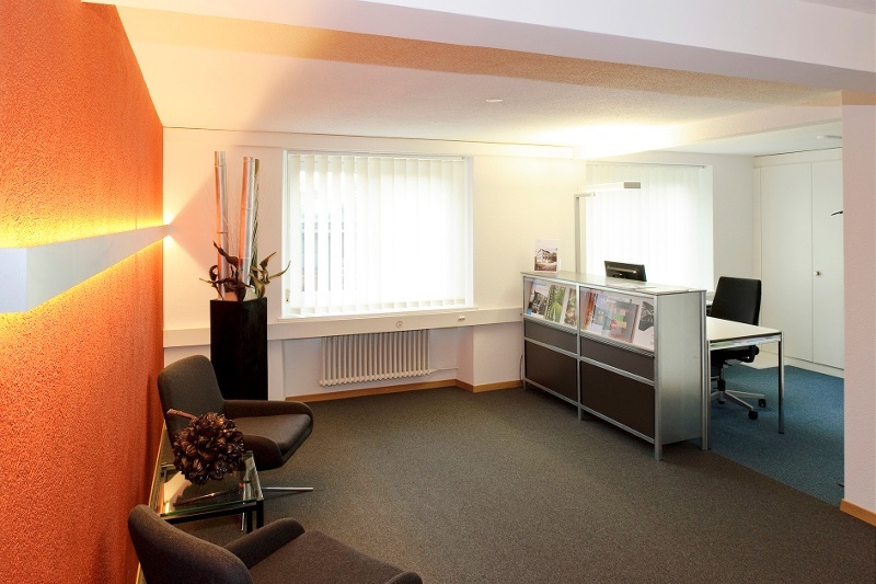 Durch die Ergänzung der Firma mit den Abteilungen Bewertung und Vermarktung mussten für die neuen Mitarbeiter weitere Büroräumlichkeiten zur Verfügung gestellt und die bestehenden angepasst werden. Durch den Wegzug einer Mieterin konnten deren Büros zu den vorhandenen geschlagen werden. Die Renovation dieser Räume, deren Möblierung und Ausrüstung mit EDV inkl. Vernetzung musste innert kürzester Frist abgewickelt werden. Die neue Grösse der Firma erforderte aber auch organisatorische Anpassungen und eine Angleichung des Zustandes der bestehenden Räume. So wurden ein Empfangsbereich gestaltet, ein kleines zentrales Sitzungszimmer erstellt, ein Aufenthaltsraum eingerichtet und die WCs renoviert. Bei dieser Gelegenheit wurde die gesamte ICT inkl. Server ersetzt und auf den neusten Stand gebracht. Damit die Besucher zum Empfang finden, wurden Korridor und Treppenhaus mit einfachen Orientierungshilfen bestückt. Nach dem Umbau entsprechen die Räume nun der neuen Grösse der Firma und repräsentieren deren neuen Geist.